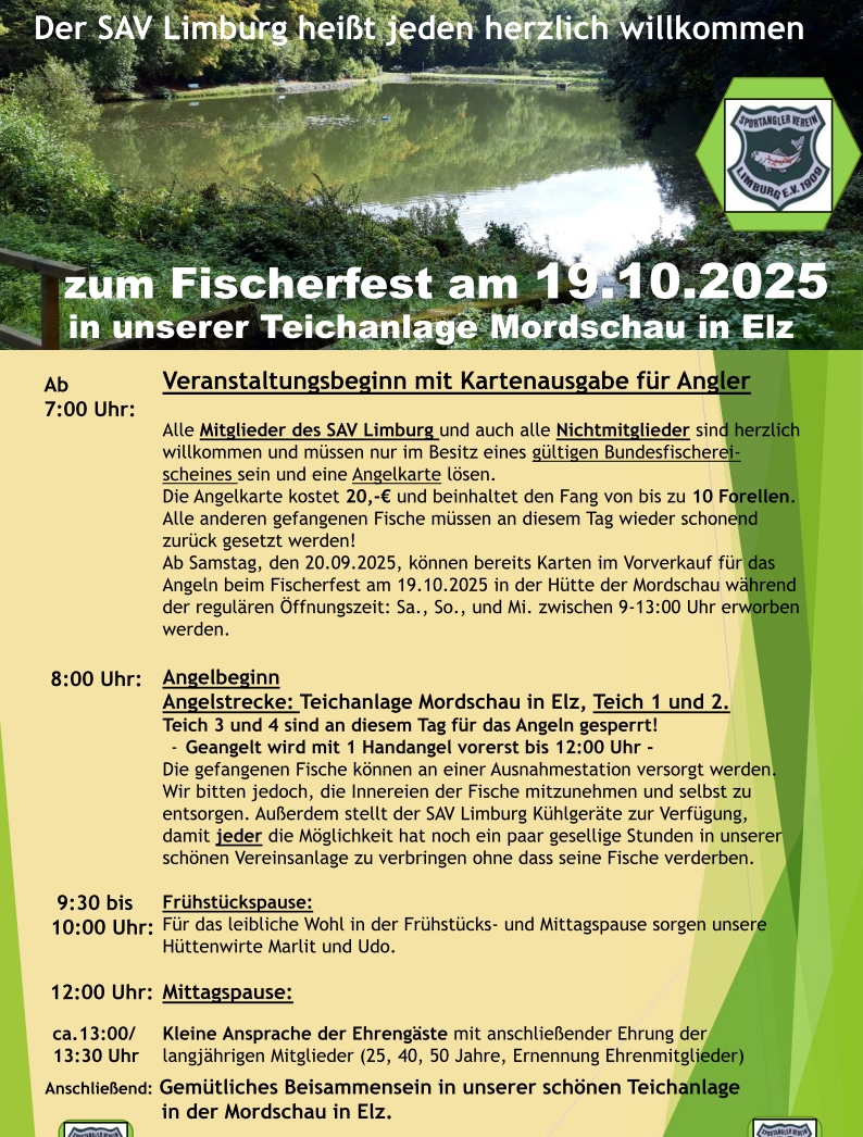 Der SAV Limburg heißt jeden herzlich willkommen zum Fischerfest am 19.10.2025